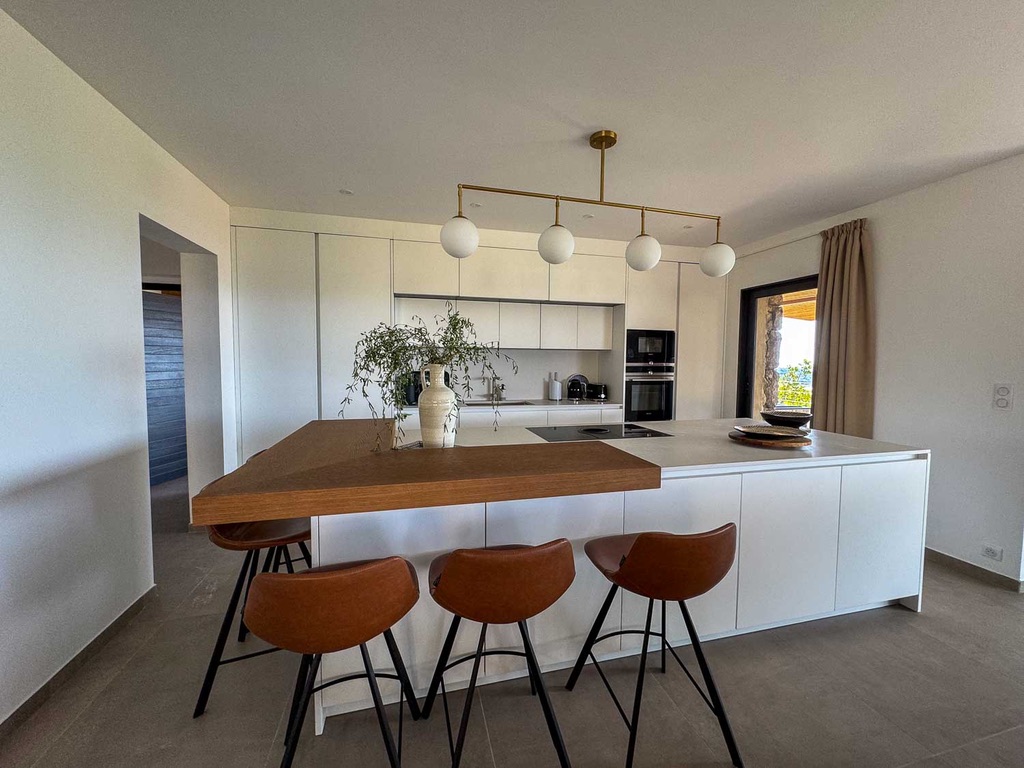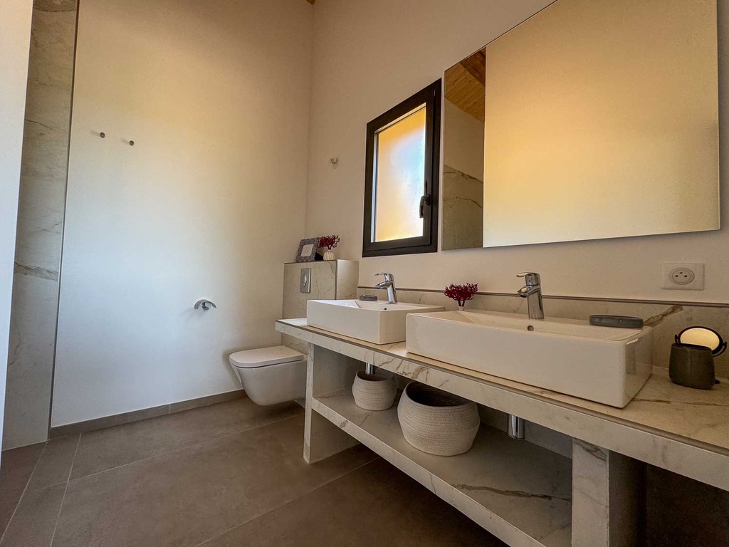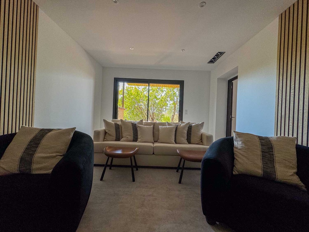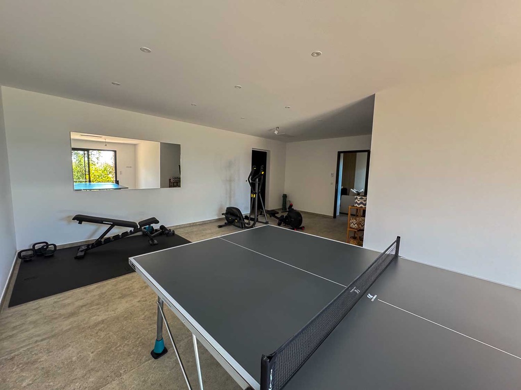 La Villa Fiorella se compose comme suit :    Intérieur :   Salon : Canapés, Smart TV, Bar, Fauteuil, système son   Cuisine : Îlot central, 2 réfrigérateurs, congélateur, cave à vin, grille pain, extracteur de jus, hotte, four à micro-ondes, machine Nespresso, machine à glaçons, bar, four, plaque de cuisson à induction, lave vaisselle, blender.   Salle à manger : Table 10 places   Salle de cinéma : Vidéo projecteur, 2 fauteuils, canapé.   Chambre Master : Lit king-size 180cm, salle de bain avec douche à l'italienne et WC, Smart TV, table de bureau, balcon.   Chambre 2 : Lit king-size 180cm, salle d'eau avec douche à l'italienne et WC, Smart TV, table de bureau, balcon.   Chambre 3 : Lit king-size 180cm, salle d'eau avec douche à l'italienne et WC, table de bureau, Smart TV, balcon.   Chambre 4  : Lit king-size 180cm, table de bureau, Smart TV, douche à l'italienne et WC, blacon.   Chambre 5 : Lit king-size 180cm, table de bureau, Smart TV, Terasse, douche à l'italienne et WC.   Chambre 6 : Lit king-size 180cm, table de bureau, Smart TV, Terasse, douche à l'italienne et WC.   Chambre 7 : Lit king-size 180cm, table de bureau, Smart TV, Terasse, douche à l'italienne et WC.   Extérieur :    Terrain de pétanque Salle à manger extérieur : Table 12 places, 2 canapés, 2 fauteuils, plancha. Coin piscine : Piscine chauffée au sel, 12 transats, coin bar, réfrigérateur. Wifi et climatisation dans l'ensemble de la villa.