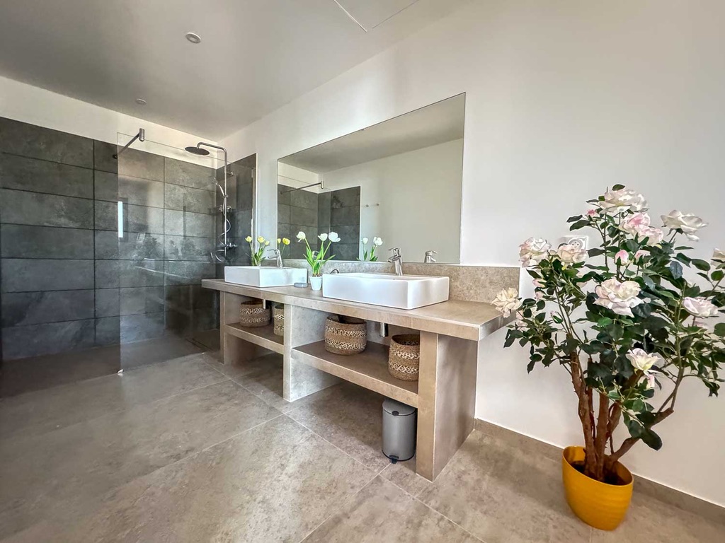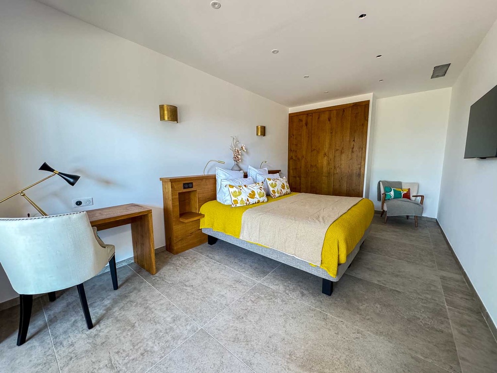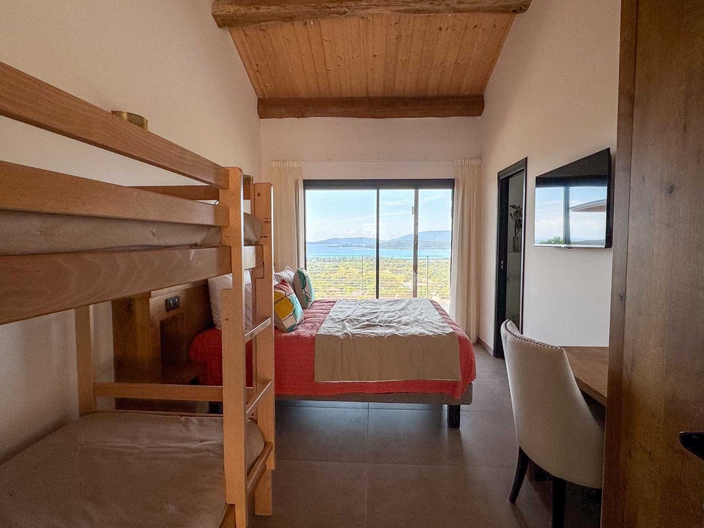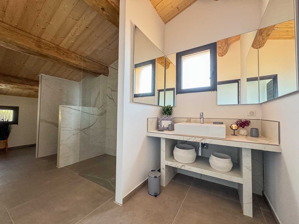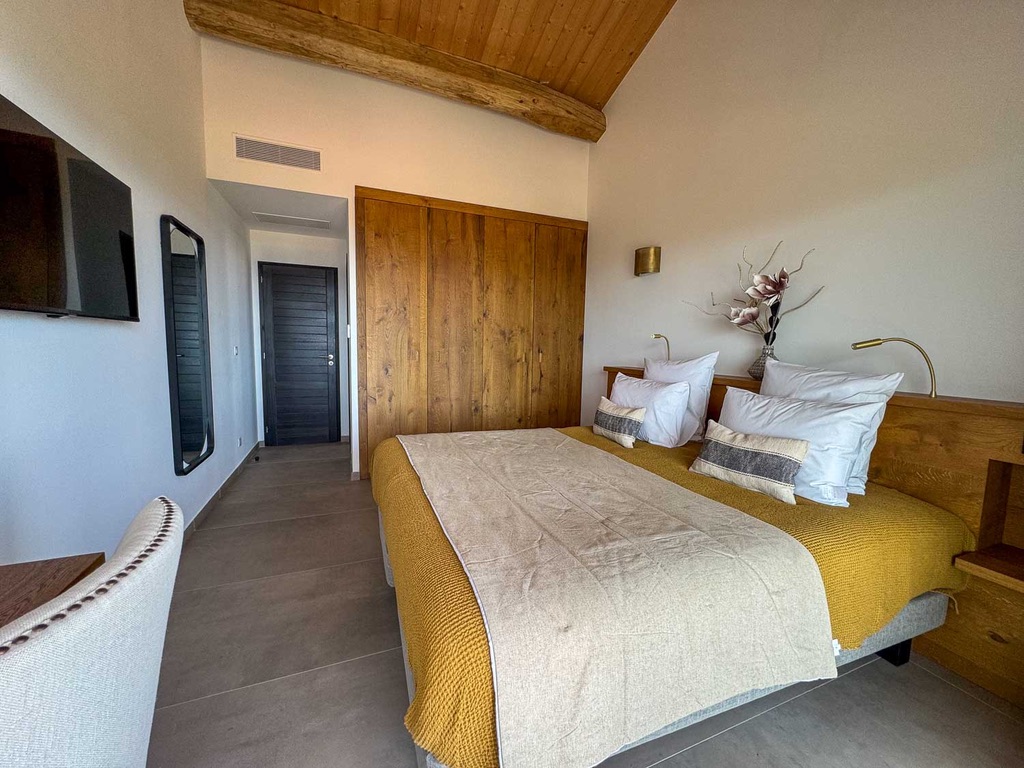 La Villa Fiorella se compose comme suit :    Intérieur :   Salon : Canapés, Smart TV, Bar, Fauteuil, système son   Cuisine : Îlot central, 2 réfrigérateurs, congélateur, cave à vin, grille pain, extracteur de jus, hotte, four à micro-ondes, machine Nespresso, machine à glaçons, bar, four, plaque de cuisson à induction, lave vaisselle, blender.   Salle à manger : Table 10 places   Salle de cinéma : Vidéo projecteur, 2 fauteuils, canapé.   Chambre Master : Lit king-size 180cm, salle de bain avec douche à l'italienne et WC, Smart TV, table de bureau, balcon.   Chambre 2 : Lit king-size 180cm, salle d'eau avec douche à l'italienne et WC, Smart TV, table de bureau, balcon.   Chambre 3 : Lit king-size 180cm, salle d'eau avec douche à l'italienne et WC, table de bureau, Smart TV, balcon.   Chambre 4  : Lit king-size 180cm, table de bureau, Smart TV, douche à l'italienne et WC, blacon.   Chambre 5 : Lit king-size 180cm, table de bureau, Smart TV, Terasse, douche à l'italienne et WC.   Chambre 6 : Lit king-size 180cm, table de bureau, Smart TV, Terasse, douche à l'italienne et WC.   Chambre 7 : Lit king-size 180cm, table de bureau, Smart TV, Terasse, douche à l'italienne et WC.   Extérieur :    Terrain de pétanque Salle à manger extérieur : Table 12 places, 2 canapés, 2 fauteuils, plancha. Coin piscine : Piscine chauffée au sel, 12 transats, coin bar, réfrigérateur. Wifi et climatisation dans l'ensemble de la villa.