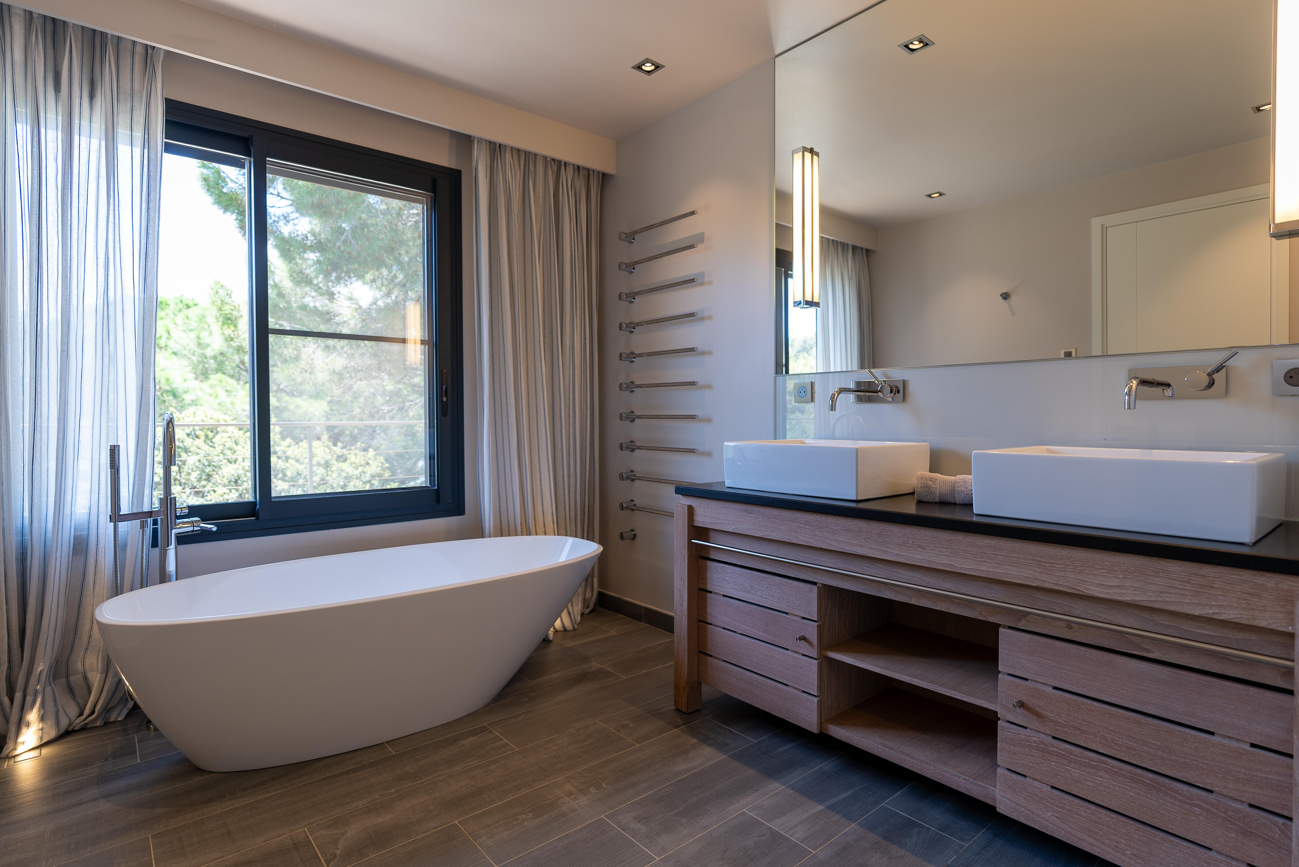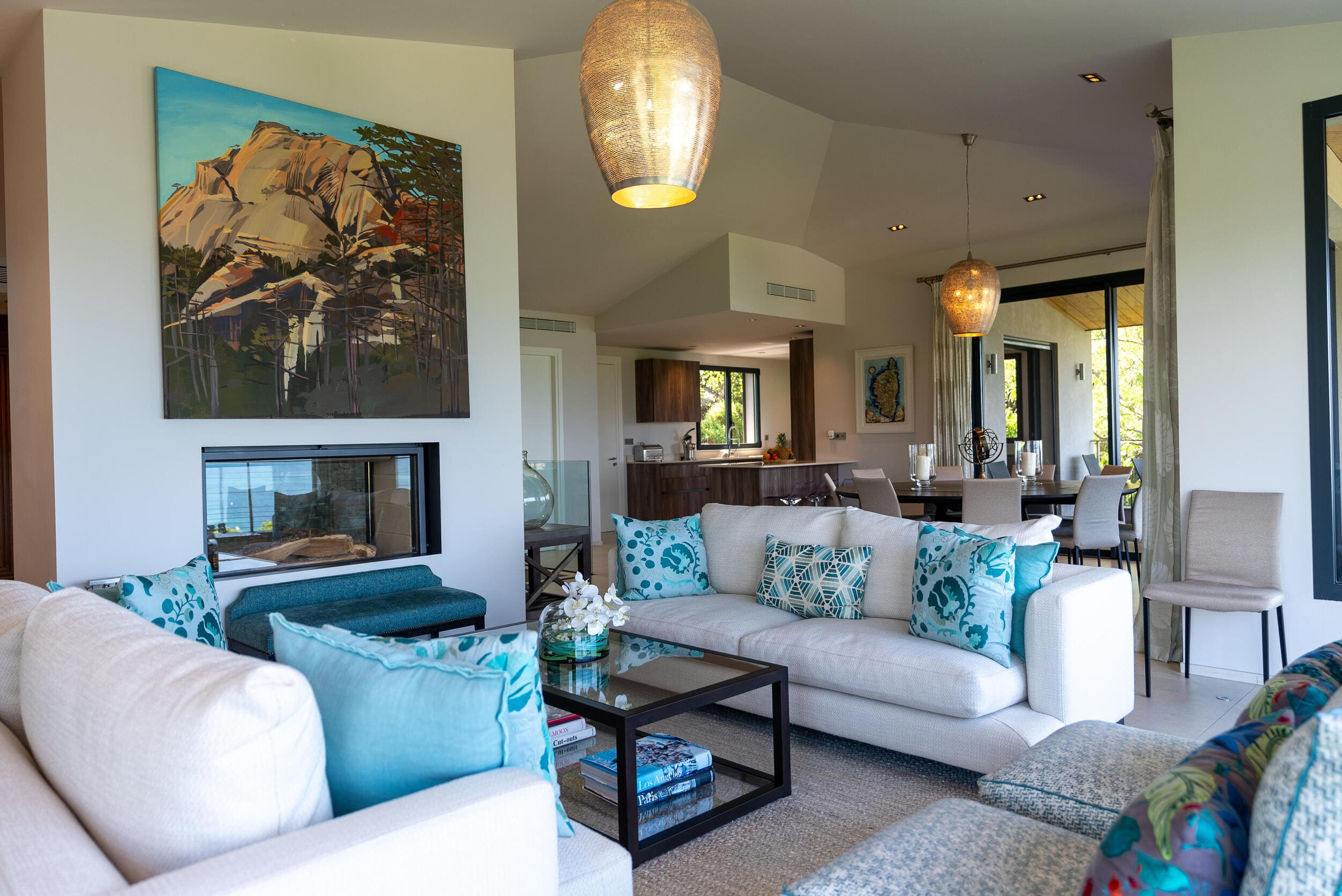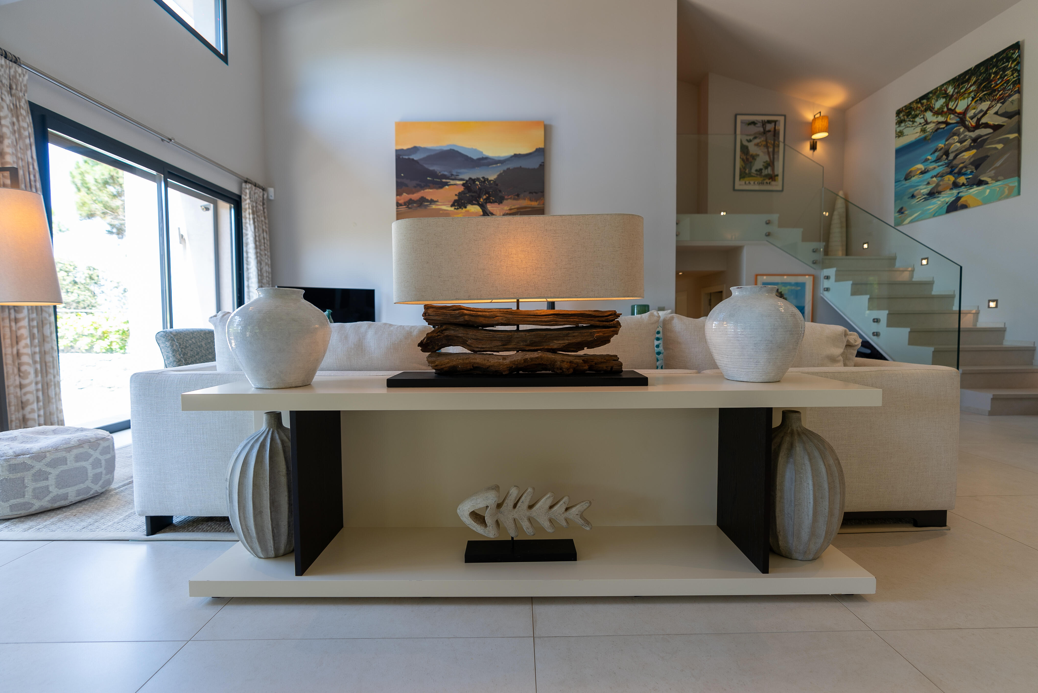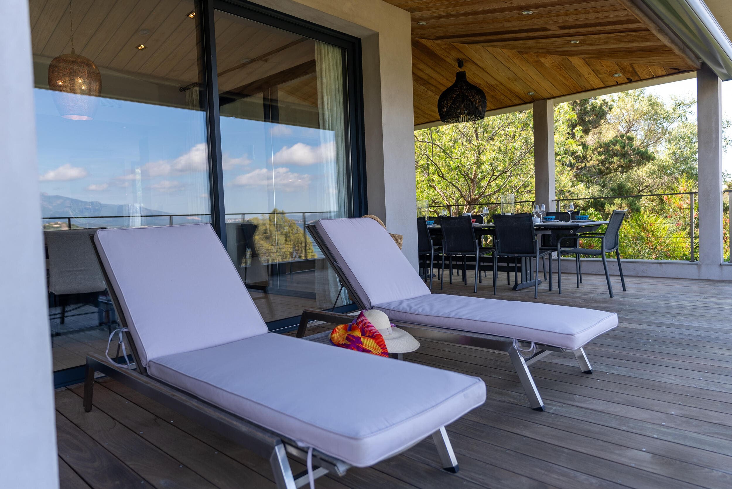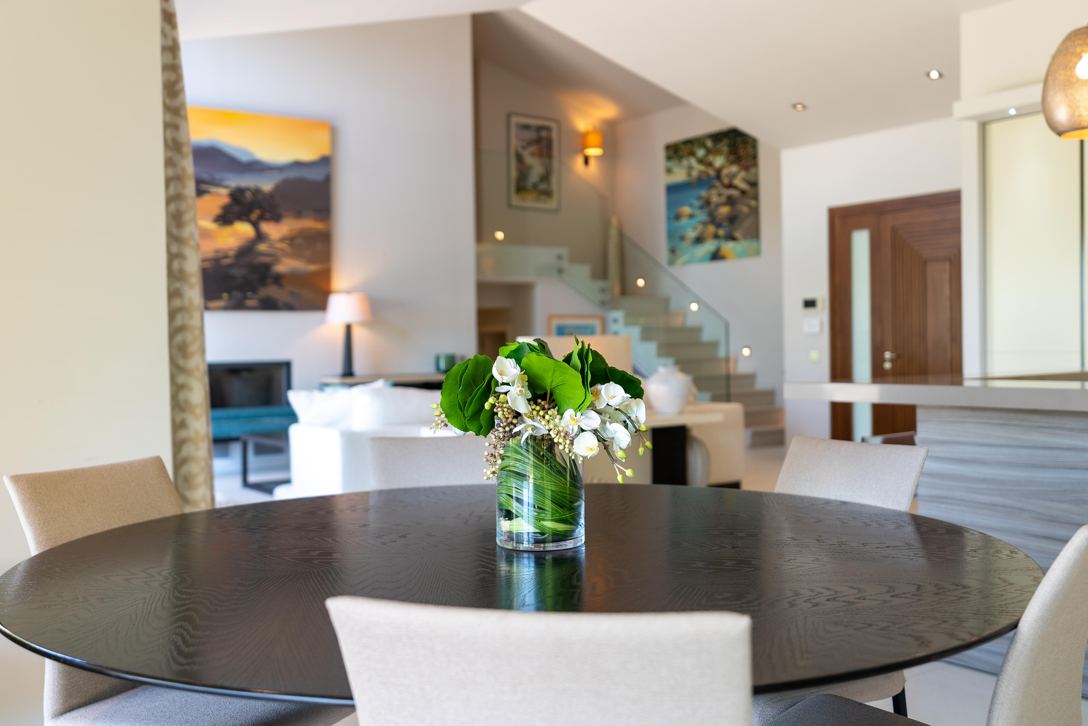 La Villa BEX vous enivrera de sa beauté: en arrivant sur place vous serez accueilli par un magnifique enrochement aménagé d’essences locales tels que les palmiers, oliviers, romarin, immortelles, ….un véritable plaisir pour l’odorat et la vue.En poussant la porte d’entrée laissez – vous charmer par la vue mer à couper le souffle sur le golfe de Porto-Vecchio.La villa se dévoile sur trois niveaux:*Au niveau principal double salon/TV avec salle à manger, cuisine entièrement équipée et aménagée, cellier, vestiaire pour invités avec WC et lave main. Le tout donnant accès à une grande terrasse semi couverte et agrémentée d’une table d’extérieure/barbecue*Un escalier permet d’accéder au niveau inférieur qui est l’espace nuit de la villa: 4 chambres magnifiquement décorées vous attendent avec la buanderie qui est entièrement équipée et aménagée. Les chambres se composent comme suit:Chambre 1 : Master Room avec lit en 180X200 cm, grand dressing, salle de bain (douche + baignoire), WC, terrasse permettant d’accéder à la piscine.Chambre 2 :lit en 180 cm, placard, séparément salle d'eau avec WC, terrasse avec accès piscineChambre 3 : lit en 180 cm, dressing, terrasse et salle d’eau avec WC.Chambre 4: lit en 180 cm, dressing séparé, salle de bain (douche + baignoire) avec WC *Enfin un escalier vous permet d’accéder au rez de jardin qui est un véritable espace détente: salle de sport, salle de massage et pool house. - Cuisine intérieure d’été entièrement équipée et aménagée. - Vous aurez accès à une terrasse semi couverte pour profiter pleinement des joies de la farniente. - La piscine dispose d’une protection enfant (rideau roulant), transat et parasols. - Une douche extérieure est également présente. L’ambiance est réellement reposante, dépaysante et charmante. La villa GRYON, alliant classicisme et modernisme, offre des prestations très haut de gamme, tant dans le mobilier que dans le choix des détails et se compose comme suit:*L'entrée se fait par une approche totalement verdoyante avec un véritable jardin d'Eden: plantes endémiques et exotiques vous mènent via un dallage de pierres de Brando à la porte d'entrée en bois massif: un hall d'entrée vous accueille vers une pièce de vie principale en total open space très lumineux: grand salon d'angle, TV avec chaines satellites, salle à manger, cuisine ouverte avec comptoir. Cette dernière, entièrement aménagée et équipée dispose de tous les éléments nécessaires: double four, double chauffe plat, plaque vitro céramique, machine à café Nespresso... Attenant se trouve un cellier avec cave à vin.*L'espace nuit se compose de 4 chambres (+ 1 pour enfant avec llit en 90 cm ou dite de service):A l'étage se trouve la Master Room de la villa avec lit en 180X200 cm, TV avec Apple TV, dressing indépendant, coffre fort, terrasse privative avec vue jardin et mer. Salle de bain avec douche et baignoire, double vasque, WCAu 1/2 niveau inférieur se trouve:un WC invitéchambre 2: lit en 140 cm, placard, salle d'eau avec WC, terrassechambre 3: lit en 180 cm, placard, terrasse et salle de bain (douche + baignoire) avec WC commun avec la chambre dite de 'service' ou destiné à un petit enfant (lit en 90 cm):chambre 4: accès extérieur et indépendant, lit en 140 cm salle d'eau avec WC. Par cet accès extérieur et indépendant de la villa vous aurez également à disposition un cellier avec cave à vin, réfrigérateur, une buanderie totalement équipée et aménagée et surtout une salle de cinéma disposant de deux canapés confortables. Cette chambre peut être destiné à du personnel de service.Les espaces extérieurs sont agrémentés d'essences locales et plus exotiques: vous serez charmés par l'ambiance qui en ressort, un coin été est également prévu avec une table extérieure ombragée. L'accès à la plage se fait en moins de 5 minutes à pied via le jardin des villas.