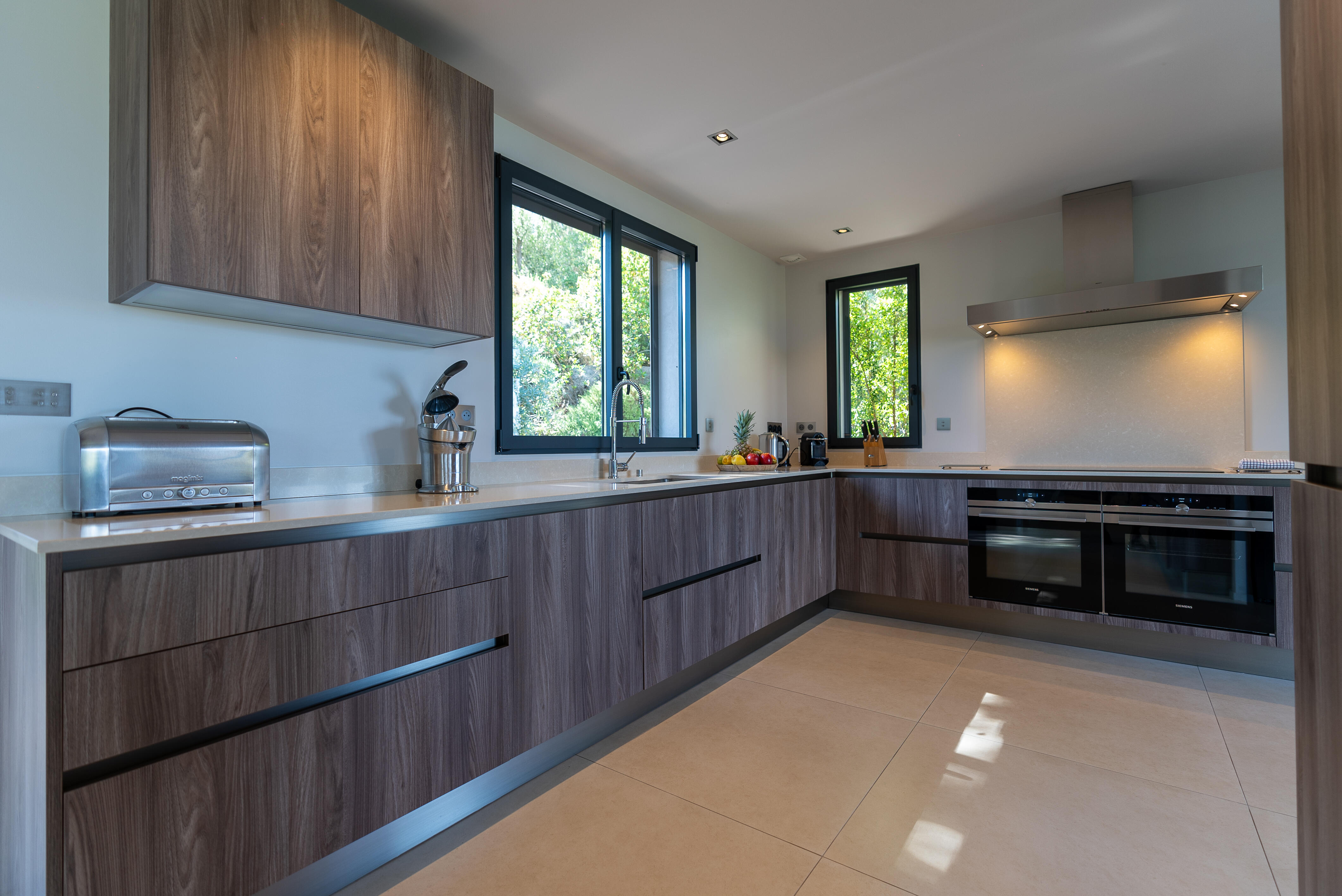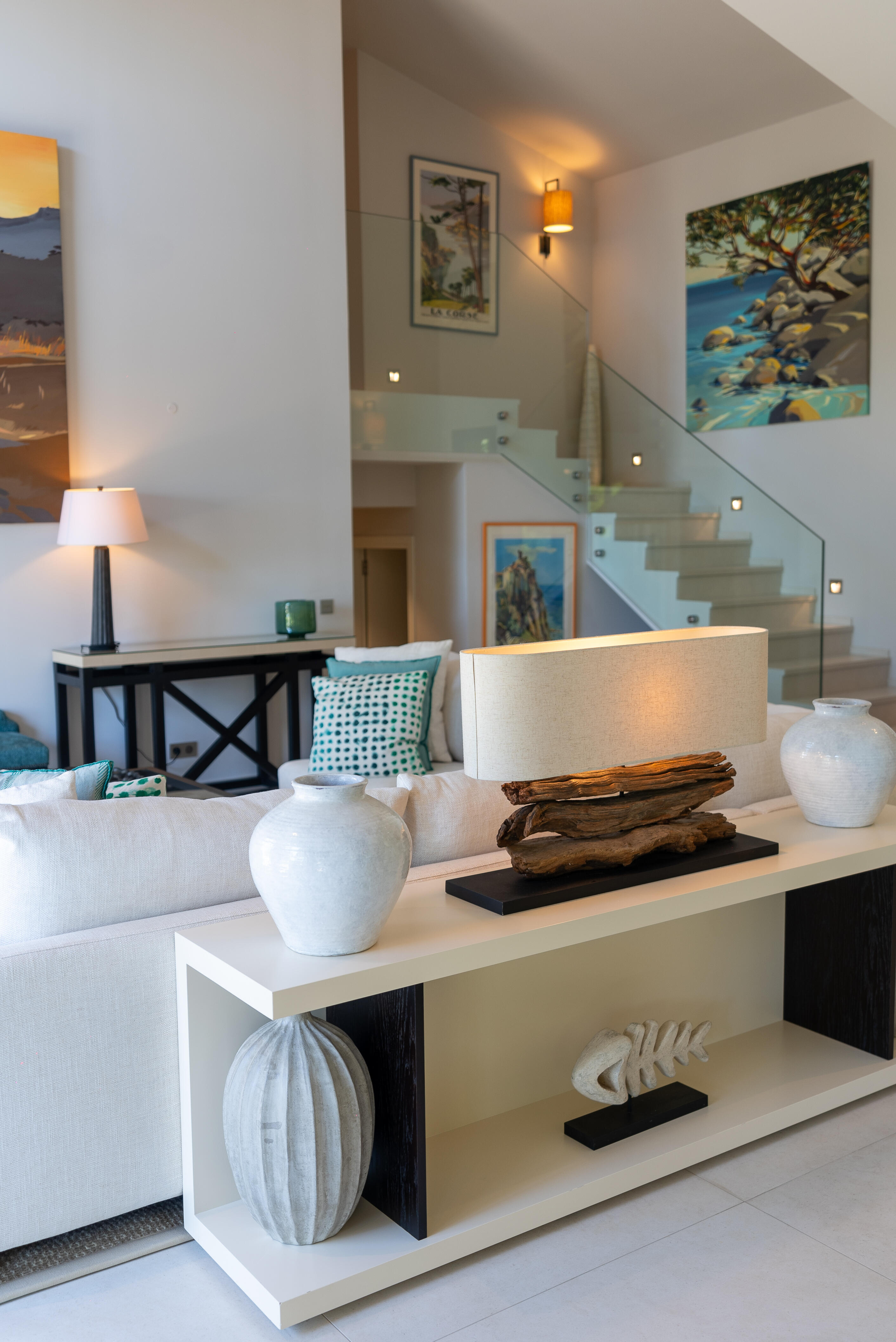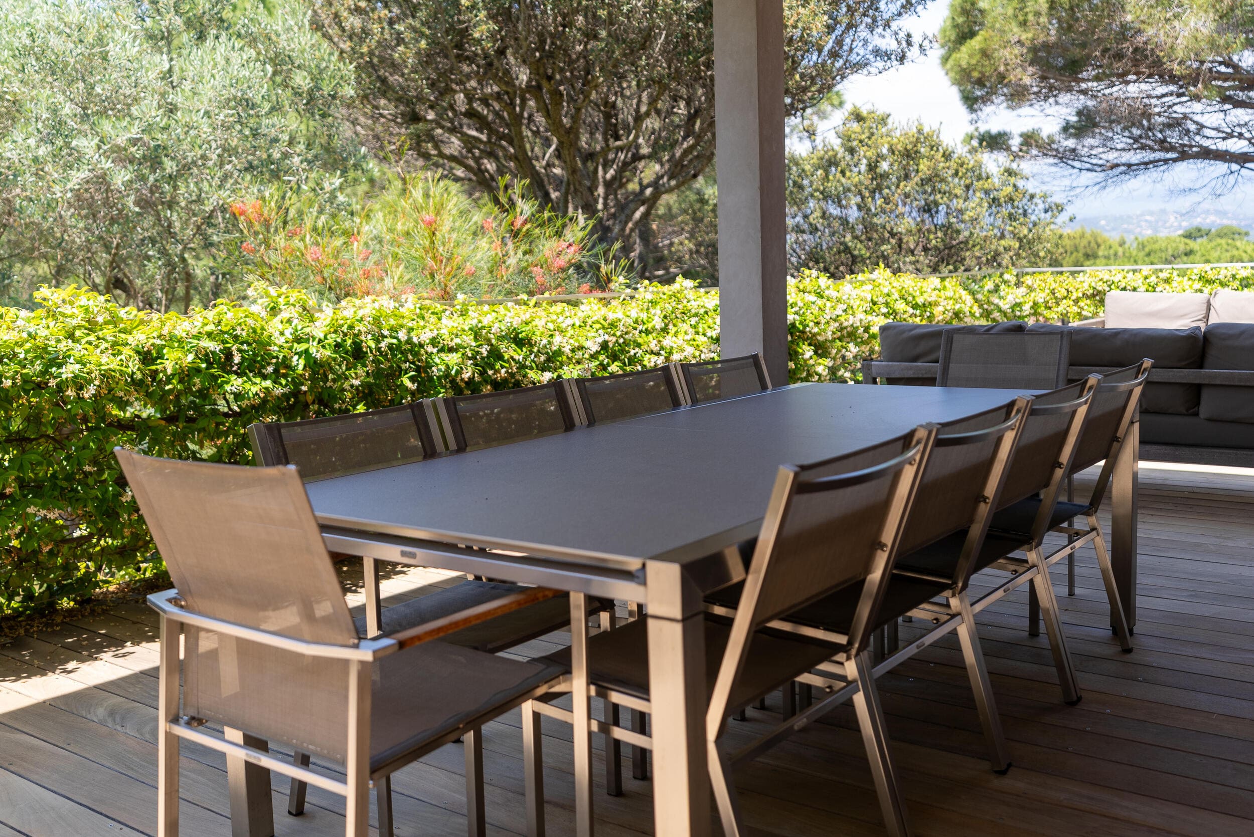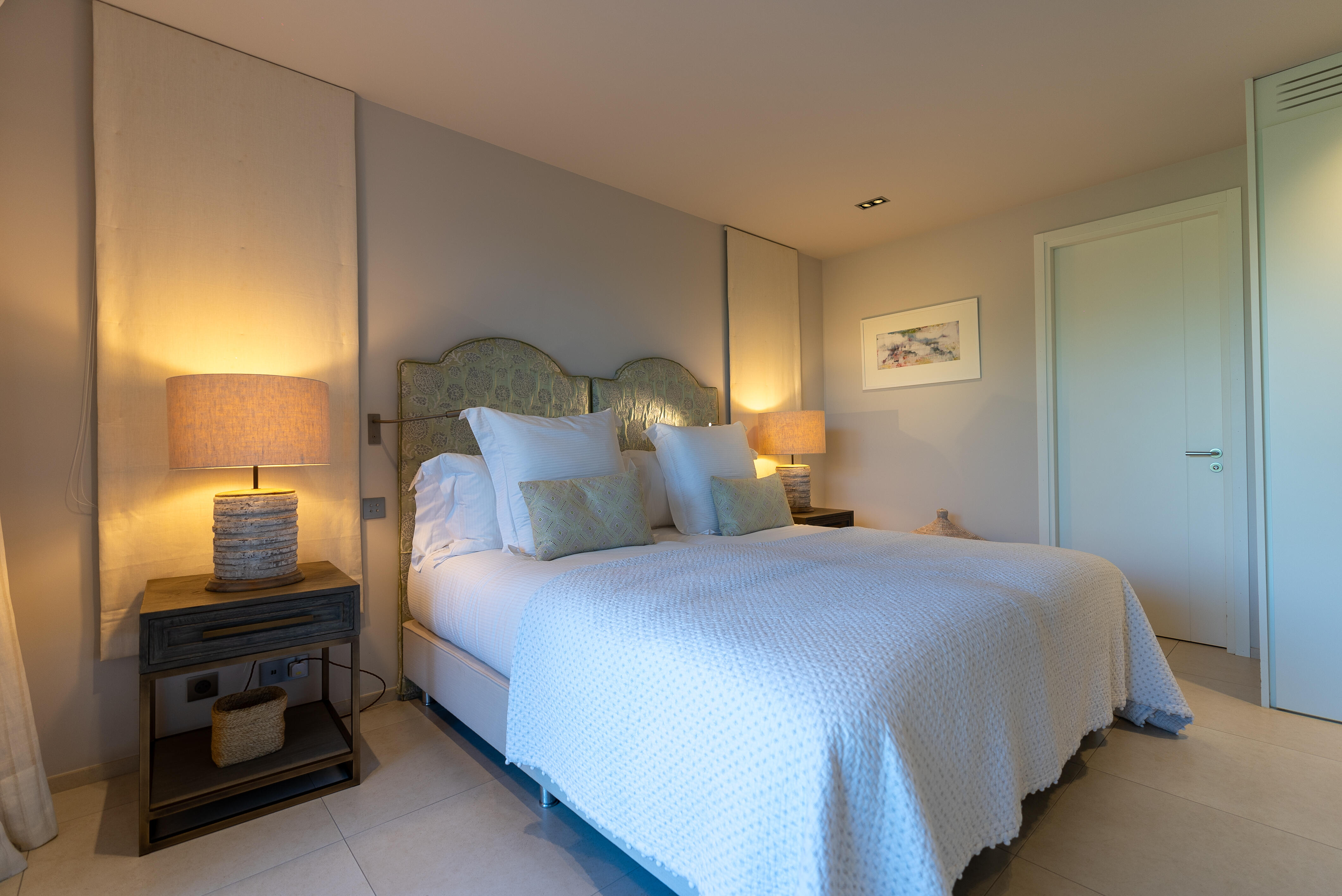 La Villa BEX vous enivrera de sa beauté: en arrivant sur place vous serez accueilli par un magnifique enrochement aménagé d’essences locales tels que les palmiers, oliviers, romarin, immortelles, ….un véritable plaisir pour l’odorat et la vue.En poussant la porte d’entrée laissez – vous charmer par la vue mer à couper le souffle sur le golfe de Porto-Vecchio.La villa se dévoile sur trois niveaux:*Au niveau principal double salon/TV avec salle à manger, cuisine entièrement équipée et aménagée, cellier, vestiaire pour invités avec WC et lave main. Le tout donnant accès à une grande terrasse semi couverte et agrémentée d’une table d’extérieure/barbecue*Un escalier permet d’accéder au niveau inférieur qui est l’espace nuit de la villa: 4 chambres magnifiquement décorées vous attendent avec la buanderie qui est entièrement équipée et aménagée. Les chambres se composent comme suit:Chambre 1 : Master Room avec lit en 180X200 cm, grand dressing, salle de bain (douche + baignoire), WC, terrasse permettant d’accéder à la piscine.Chambre 2 :lit en 180 cm, placard, séparément salle d'eau avec WC, terrasse avec accès piscineChambre 3 : lit en 180 cm, dressing, terrasse et salle d’eau avec WC.Chambre 4: lit en 180 cm, dressing séparé, salle de bain (douche + baignoire) avec WC *Enfin un escalier vous permet d’accéder au rez de jardin qui est un véritable espace détente: salle de sport, salle de massage et pool house. - Cuisine intérieure d’été entièrement équipée et aménagée. - Vous aurez accès à une terrasse semi couverte pour profiter pleinement des joies de la farniente. - La piscine dispose d’une protection enfant (rideau roulant), transat et parasols. - Une douche extérieure est également présente. L’ambiance est réellement reposante, dépaysante et charmante. La villa GRYON, alliant classicisme et modernisme, offre des prestations très haut de gamme, tant dans le mobilier que dans le choix des détails et se compose comme suit:*L'entrée se fait par une approche totalement verdoyante avec un véritable jardin d'Eden: plantes endémiques et exotiques vous mènent via un dallage de pierres de Brando à la porte d'entrée en bois massif: un hall d'entrée vous accueille vers une pièce de vie principale en total open space très lumineux: grand salon d'angle, TV avec chaines satellites, salle à manger, cuisine ouverte avec comptoir. Cette dernière, entièrement aménagée et équipée dispose de tous les éléments nécessaires: double four, double chauffe plat, plaque vitro céramique, machine à café Nespresso... Attenant se trouve un cellier avec cave à vin.*L'espace nuit se compose de 4 chambres (+ 1 pour enfant avec llit en 90 cm ou dite de service):A l'étage se trouve la Master Room de la villa avec lit en 180X200 cm, TV avec Apple TV, dressing indépendant, coffre fort, terrasse privative avec vue jardin et mer. Salle de bain avec douche et baignoire, double vasque, WCAu 1/2 niveau inférieur se trouve:un WC invitéchambre 2: lit en 140 cm, placard, salle d'eau avec WC, terrassechambre 3: lit en 180 cm, placard, terrasse et salle de bain (douche + baignoire) avec WC commun avec la chambre dite de 'service' ou destiné à un petit enfant (lit en 90 cm):chambre 4: accès extérieur et indépendant, lit en 140 cm salle d'eau avec WC. Par cet accès extérieur et indépendant de la villa vous aurez également à disposition un cellier avec cave à vin, réfrigérateur, une buanderie totalement équipée et aménagée et surtout une salle de cinéma disposant de deux canapés confortables. Cette chambre peut être destiné à du personnel de service.Les espaces extérieurs sont agrémentés d'essences locales et plus exotiques: vous serez charmés par l'ambiance qui en ressort, un coin été est également prévu avec une table extérieure ombragée. L'accès à la plage se fait en moins de 5 minutes à pied via le jardin des villas.
