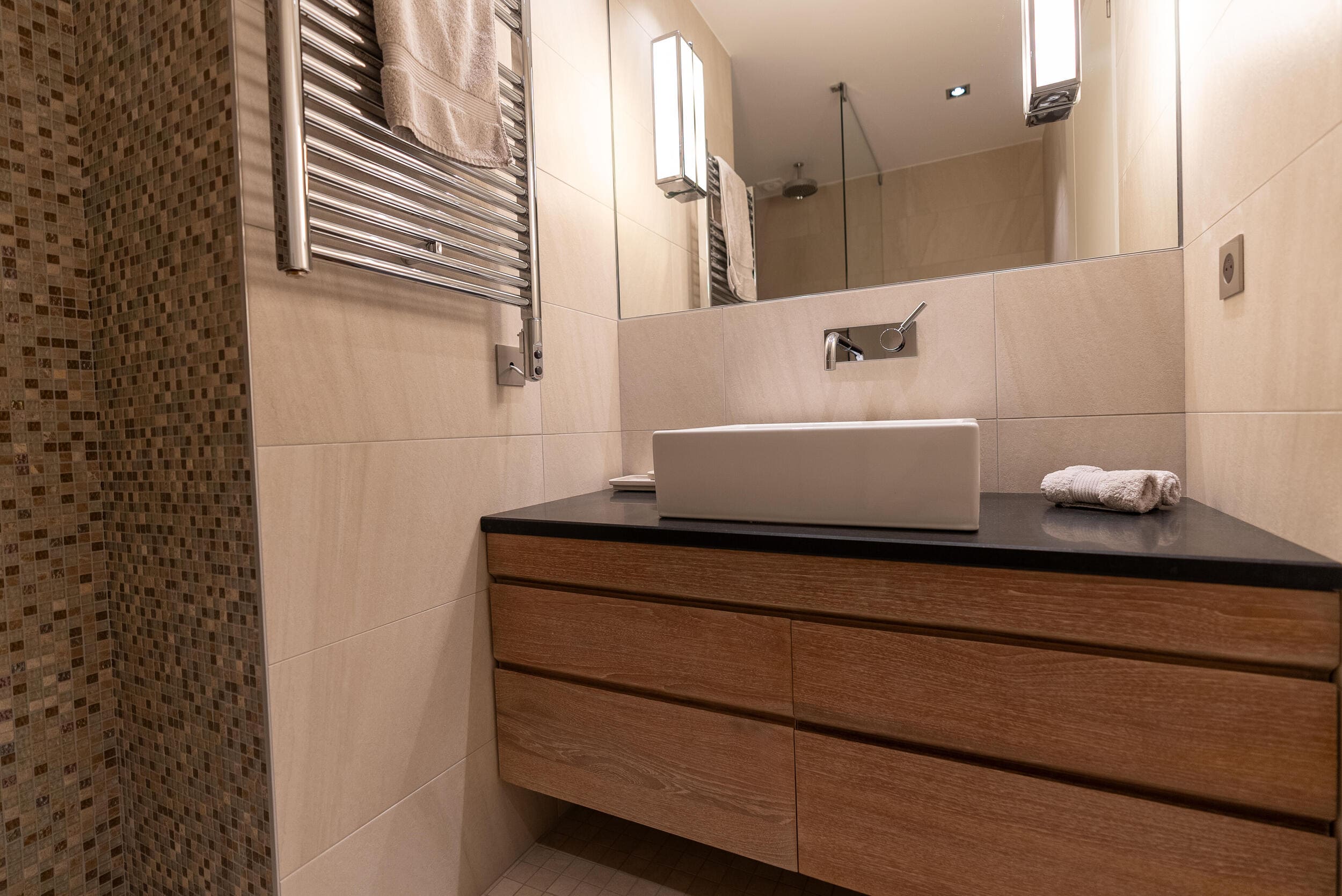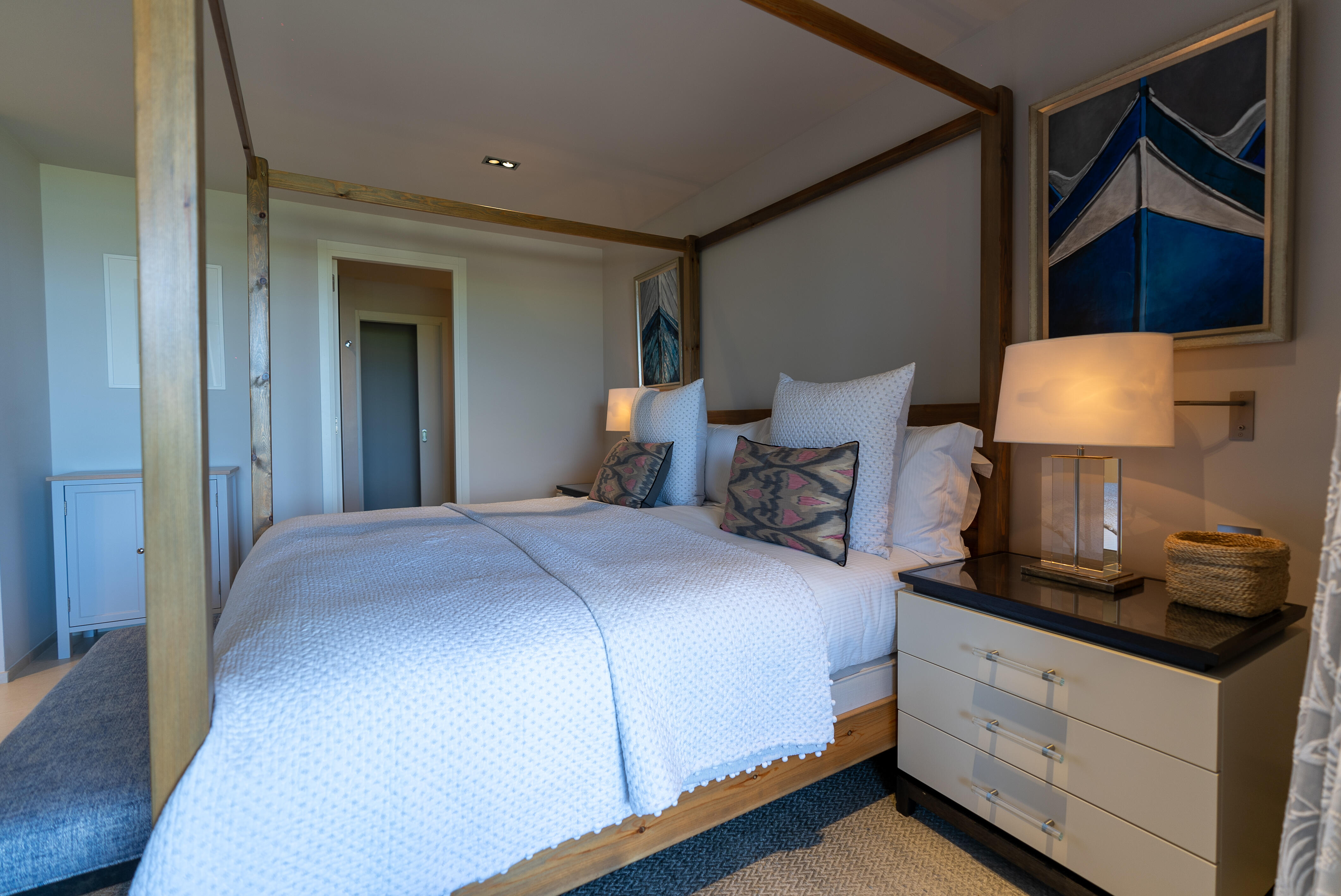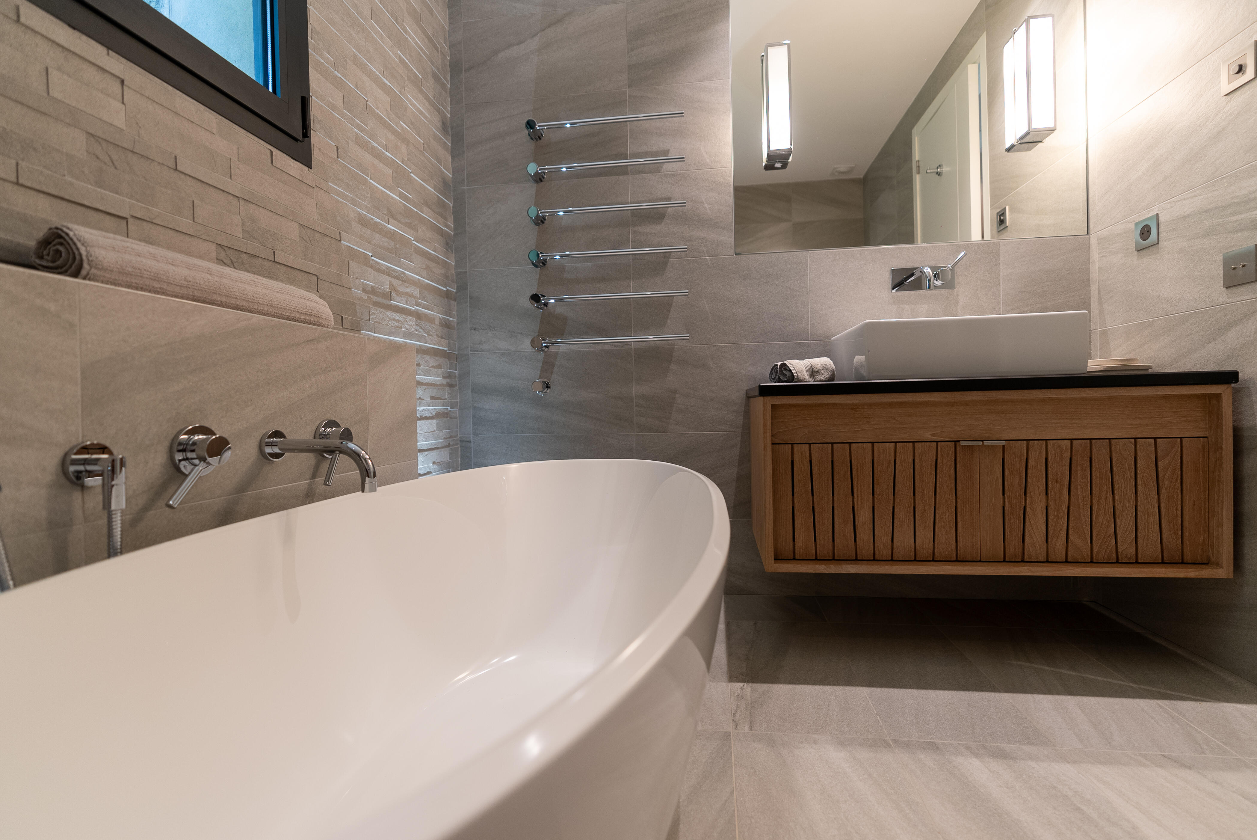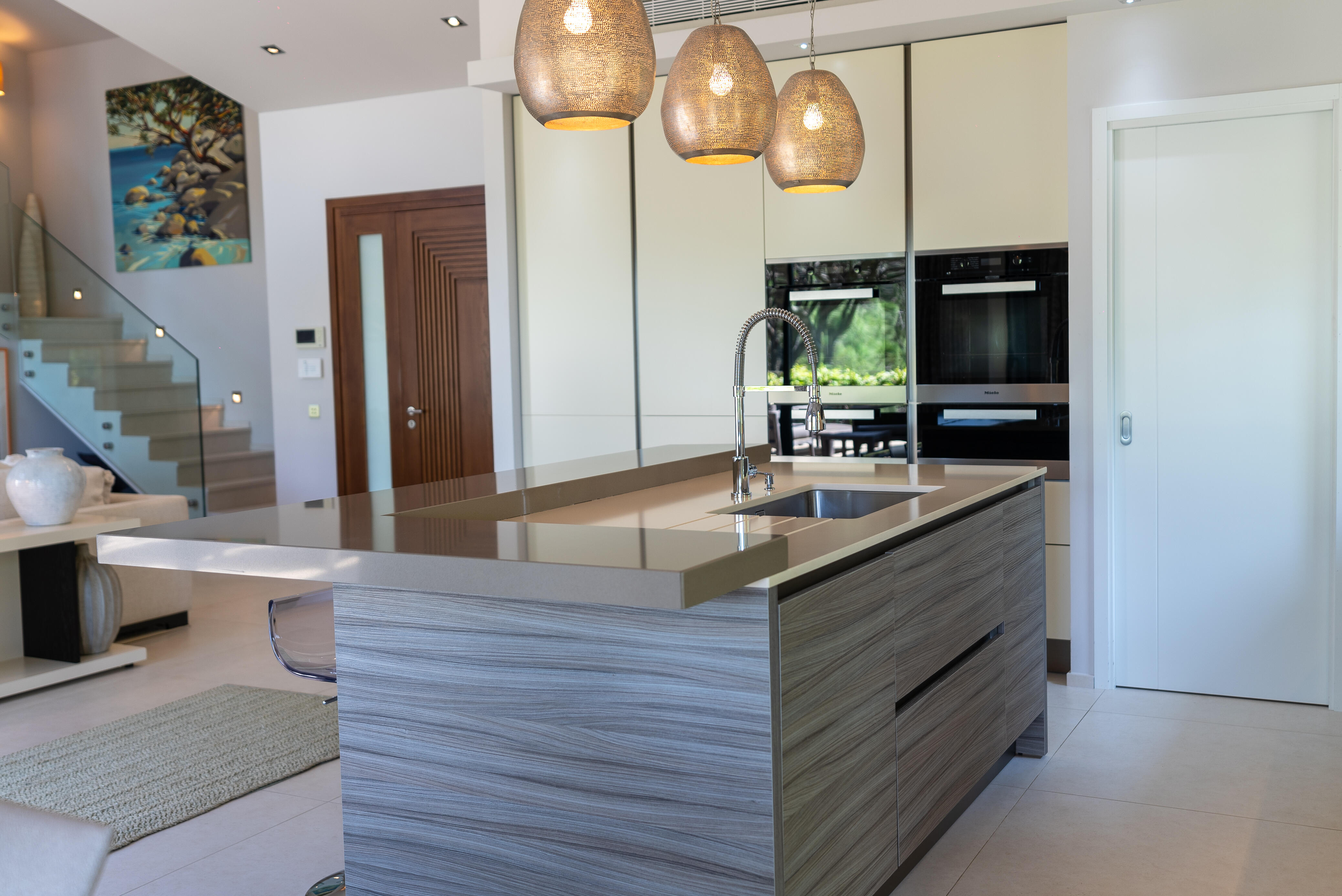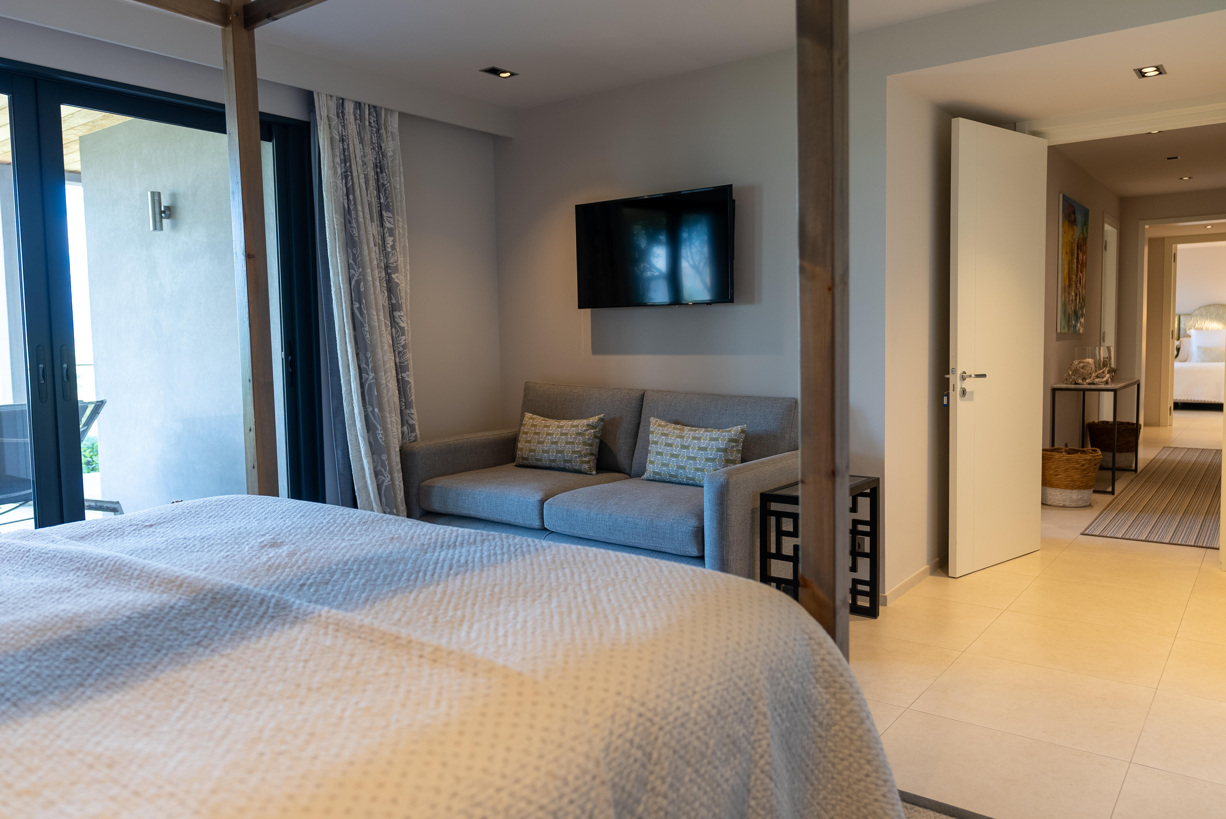 La Villa BEX vous enivrera de sa beauté: en arrivant sur place vous serez accueilli par un magnifique enrochement aménagé d’essences locales tels que les palmiers, oliviers, romarin, immortelles, ….un véritable plaisir pour l’odorat et la vue.En poussant la porte d’entrée laissez – vous charmer par la vue mer à couper le souffle sur le golfe de Porto-Vecchio.La villa se dévoile sur trois niveaux:*Au niveau principal double salon/TV avec salle à manger, cuisine entièrement équipée et aménagée, cellier, vestiaire pour invités avec WC et lave main. Le tout donnant accès à une grande terrasse semi couverte et agrémentée d’une table d’extérieure/barbecue*Un escalier permet d’accéder au niveau inférieur qui est l’espace nuit de la villa: 4 chambres magnifiquement décorées vous attendent avec la buanderie qui est entièrement équipée et aménagée. Les chambres se composent comme suit:Chambre 1 : Master Room avec lit en 180X200 cm, grand dressing, salle de bain (douche + baignoire), WC, terrasse permettant d’accéder à la piscine.Chambre 2 :lit en 180 cm, placard, séparément salle d'eau avec WC, terrasse avec accès piscineChambre 3 : lit en 180 cm, dressing, terrasse et salle d’eau avec WC.Chambre 4: lit en 180 cm, dressing séparé, salle de bain (douche + baignoire) avec WC *Enfin un escalier vous permet d’accéder au rez de jardin qui est un véritable espace détente: salle de sport, salle de massage et pool house. - Cuisine intérieure d’été entièrement équipée et aménagée. - Vous aurez accès à une terrasse semi couverte pour profiter pleinement des joies de la farniente. - La piscine dispose d’une protection enfant (rideau roulant), transat et parasols. - Une douche extérieure est également présente. L’ambiance est réellement reposante, dépaysante et charmante. La villa GRYON, alliant classicisme et modernisme, offre des prestations très haut de gamme, tant dans le mobilier que dans le choix des détails et se compose comme suit:*L'entrée se fait par une approche totalement verdoyante avec un véritable jardin d'Eden: plantes endémiques et exotiques vous mènent via un dallage de pierres de Brando à la porte d'entrée en bois massif: un hall d'entrée vous accueille vers une pièce de vie principale en total open space très lumineux: grand salon d'angle, TV avec chaines satellites, salle à manger, cuisine ouverte avec comptoir. Cette dernière, entièrement aménagée et équipée dispose de tous les éléments nécessaires: double four, double chauffe plat, plaque vitro céramique, machine à café Nespresso... Attenant se trouve un cellier avec cave à vin.*L'espace nuit se compose de 4 chambres (+ 1 pour enfant avec llit en 90 cm ou dite de service):A l'étage se trouve la Master Room de la villa avec lit en 180X200 cm, TV avec Apple TV, dressing indépendant, coffre fort, terrasse privative avec vue jardin et mer. Salle de bain avec douche et baignoire, double vasque, WCAu 1/2 niveau inférieur se trouve:un WC invitéchambre 2: lit en 140 cm, placard, salle d'eau avec WC, terrassechambre 3: lit en 180 cm, placard, terrasse et salle de bain (douche + baignoire) avec WC commun avec la chambre dite de 'service' ou destiné à un petit enfant (lit en 90 cm):chambre 4: accès extérieur et indépendant, lit en 140 cm salle d'eau avec WC. Par cet accès extérieur et indépendant de la villa vous aurez également à disposition un cellier avec cave à vin, réfrigérateur, une buanderie totalement équipée et aménagée et surtout une salle de cinéma disposant de deux canapés confortables. Cette chambre peut être destiné à du personnel de service.Les espaces extérieurs sont agrémentés d'essences locales et plus exotiques: vous serez charmés par l'ambiance qui en ressort, un coin été est également prévu avec une table extérieure ombragée. L'accès à la plage se fait en moins de 5 minutes à pied via le jardin des villas.